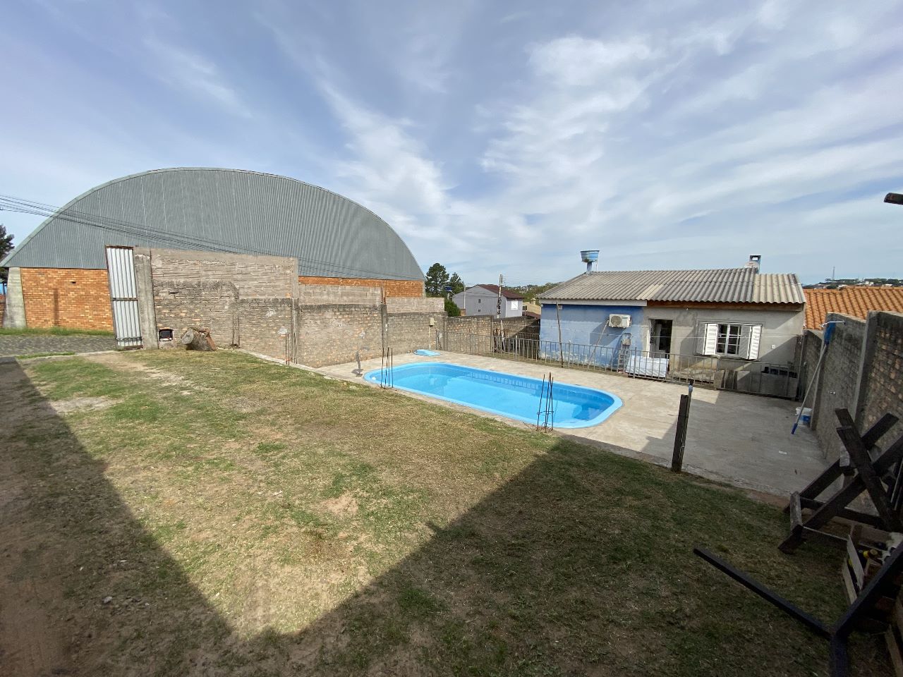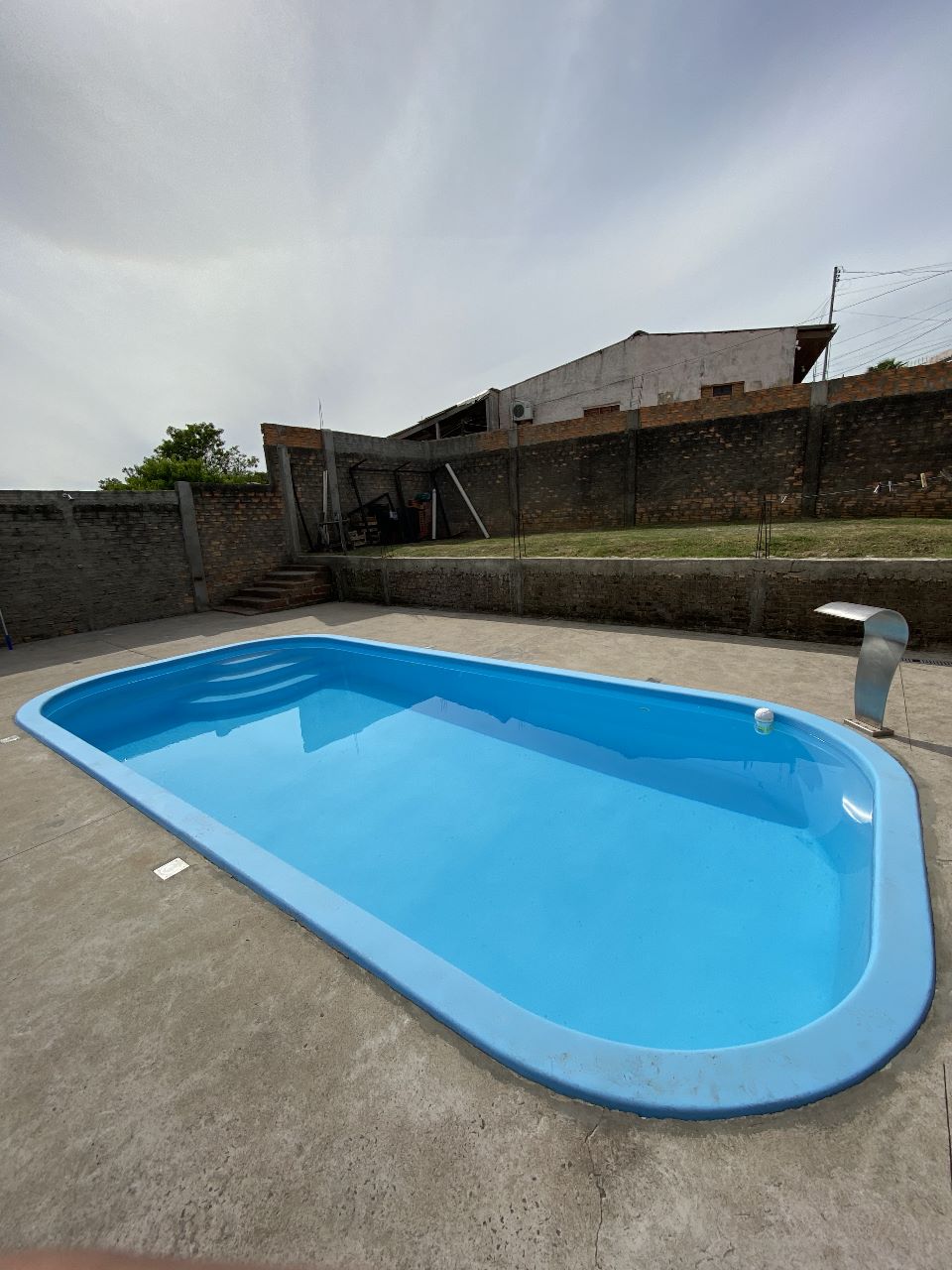Casa de esquina com piscina e terreno de 12x34m, casa de 3 dormitórios, sendo um suite, 2 banheiros, sala de jantar e estar juntas, cozinha ampla com balcão fixo, pátio com garagem para 4 carros, piscina de 7×3,5 calçada em volta, muro reforçado próprio ao redor de toda casa, vista privilegiada do centro da cidade.